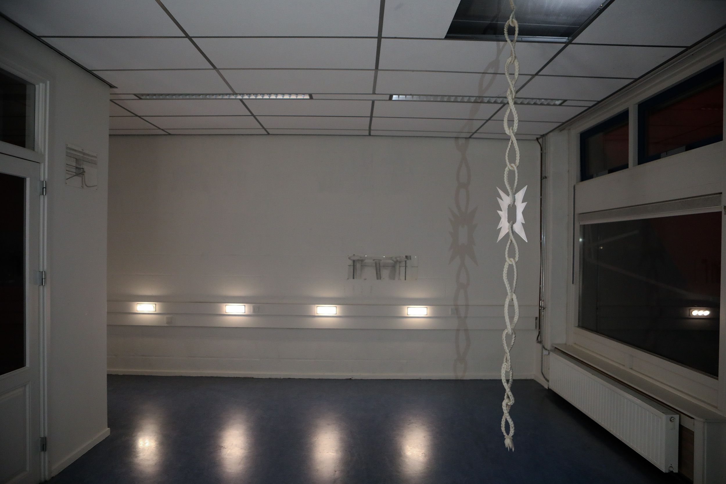 Installation view TRUTH AND DARE with Ingeborg Kraft Fermin (SE), Abel Kars (NL) and Lou Vives (PT) at Personeelskamer, Amsterdam, NL 2024.